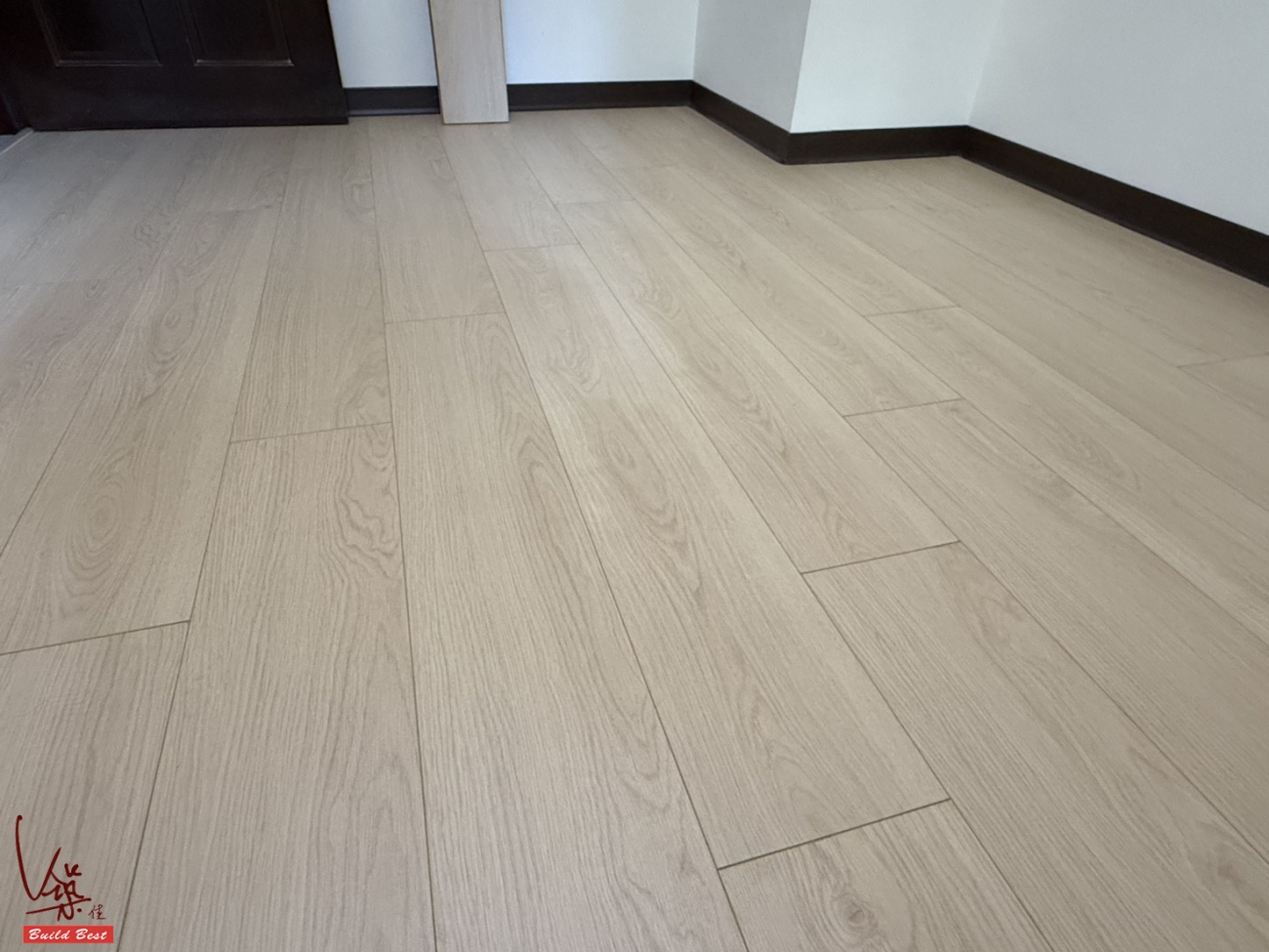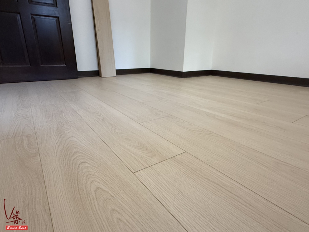 尺寸1220*196*12mm/4V導角(四面溝槽封蠟抗潮處理)/低甲醛F1等級/抗蟲害:採用F1級尤加利樹夾板底,無毒&抗蟲/防潮/耐磨耐久性強/降噪17dB/防焰一級.